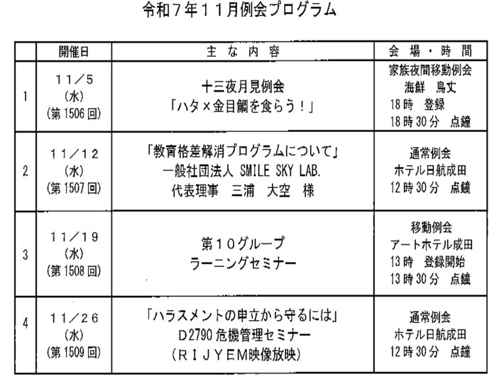 ・週報第1503回 令和7年10月12日(地区大会)をUPいたしました。